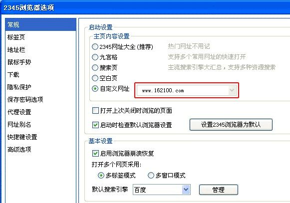 提示:若仍无法设置主页,请点击查看“主页修复”;或“把58q8网址导航下载到桌面” 2345浏览器