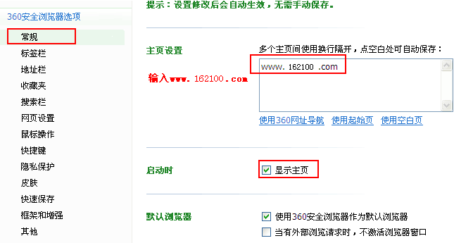 提示:若仍无法设置主页,请点击查看“主页修复”;或“把58q8网址导航下载到桌面” 360极速浏览器