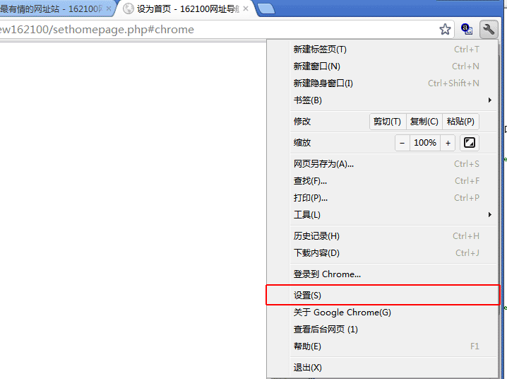 Chrome浏览器设置主页的方法: 1)首先,点击浏览器上右侧“扳手”按钮,在下拉列表中选择“选项”,如下图所示:
