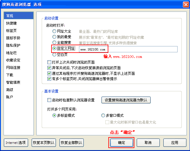 提示:若仍无法设置主页,请点击查看“主页修复”;或“把58q8网址导航下载到桌面” 搜狗浏览器